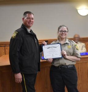 Chambers County Sheriff Jeff Nelson recognized Cassie Tomczek on working 10 years at the detention facility.