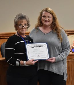 Chambers County Revenue Commissioner Beth Abney recognized Alaina Ison who has worked 10 years at the Revenue Commission Office.