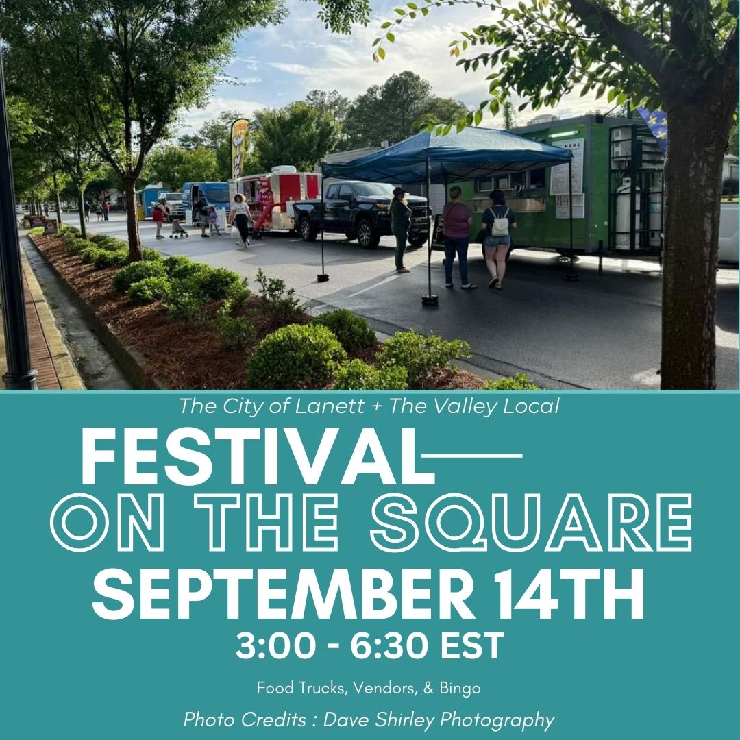 The City of Lanett and Valley Local present Festival On The Square on Sunday, September 14th, from 3:00-6:30 EST.