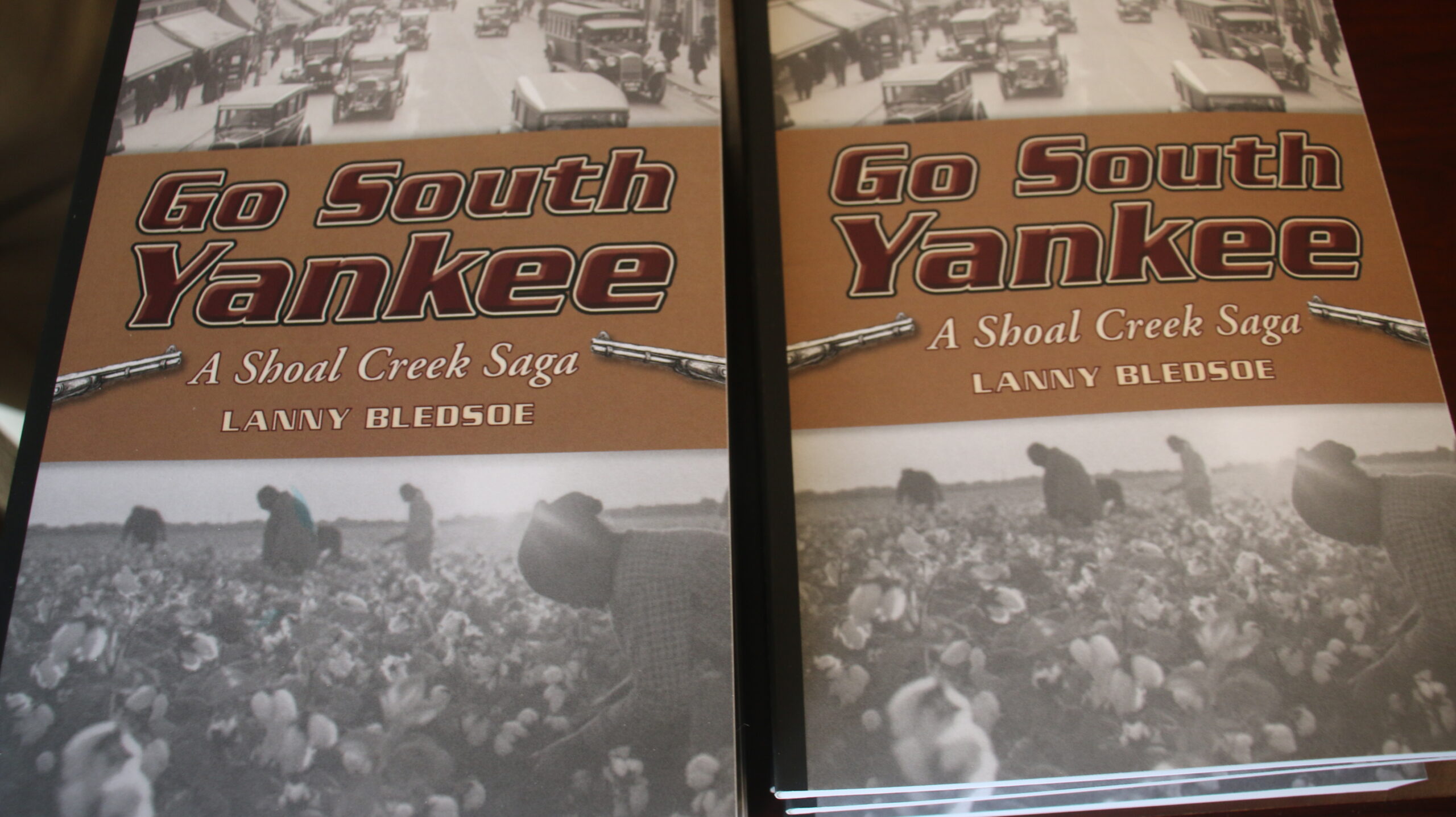 Local author Lanny Bledsoe held a book signing for his latest and final novel, ” Go South Yankee A Shoal Creek Saga,” on Saturday at the Fairfax Village Antique Market.